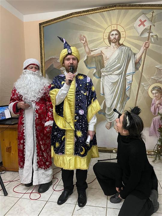 Техническую часть концерта обеспечил прихожанин храма, сотрудник МООИ «Пилигрим» Дмитрий Сметанин. Он также принял участие в театрализованном представлении.